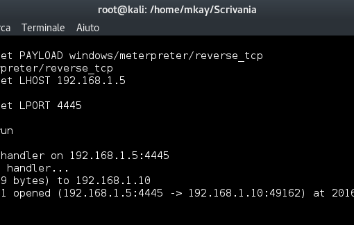 Abbiamo una sessione in questo caso. Con il comando “sessions 1” possiamo selezionarla.